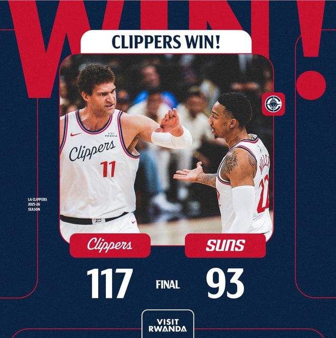 快船117-93狂胜太阳,这场比赛后快船战绩23胜25负,太阳则是30胜20负,太阳的胜率再度低于湖人,所以太阳再度回落西部第七,湖人因此受益回到西部第六的位置,湖人真的应该好好感谢快船。