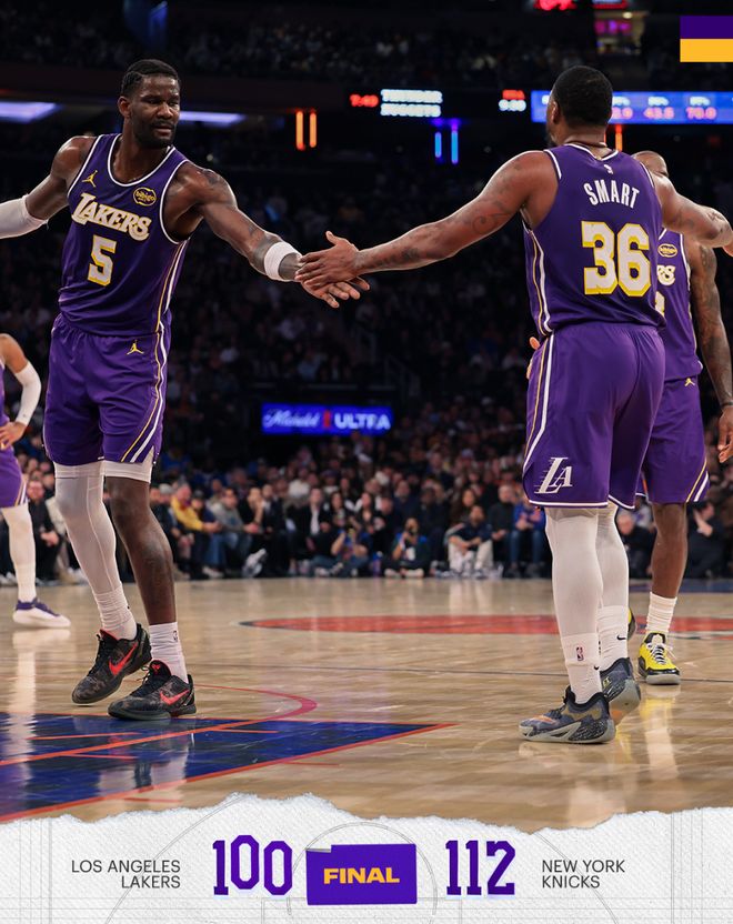 湖人惨败尼克斯的比赛率先结束,湖人29胜19负短暂的掉入附加赛区,因为这时候快船VS太阳的比赛还在打,这场比赛东契奇30+15,詹姆斯22+6,但快船很快就帮助同城兄弟重返第六。