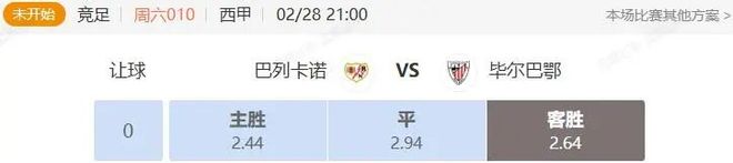 竞足 周六010 西甲 巴列卡诺VS毕尔巴鄂